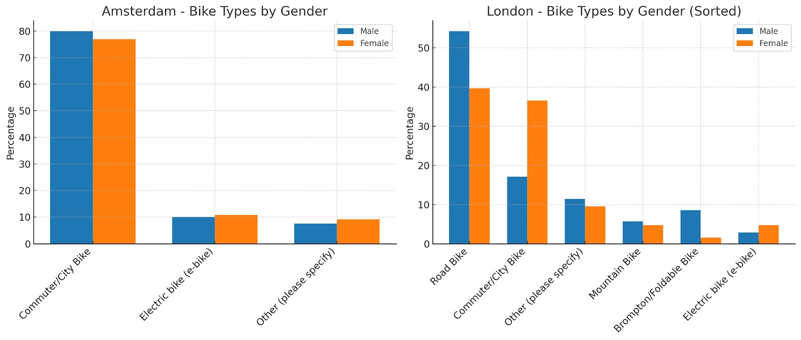 Differences in Cycling and Gender Patterns Between the Two Cities